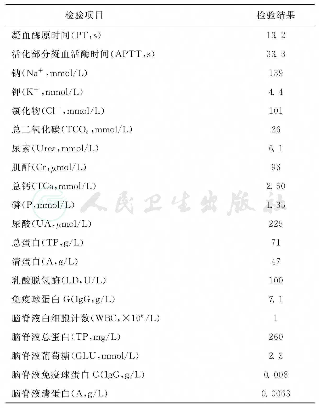 实验室部分检验结果见表1。免疫固定电泳,显示脑脊液异常单克隆条带。其他检查结果:磁共振示椎旁左侧肿块,病理检查显示为神经细胞瘤。
